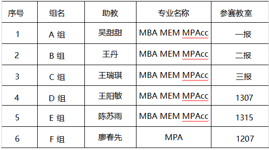 表 1 2024 级 MBA MPA MEM MPAcc案例大赛小组突围赛分组表