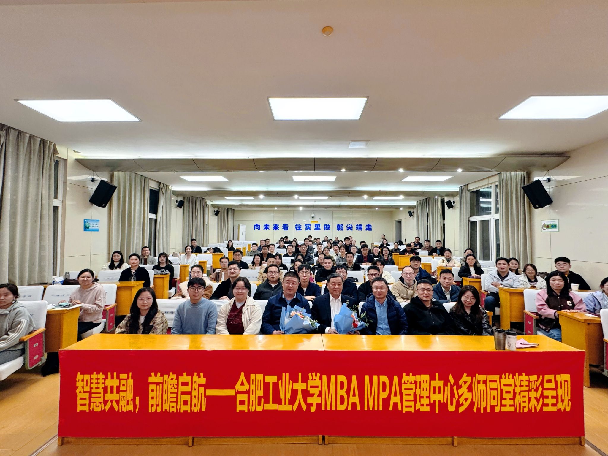 为深化 “多师同堂”教学建设,推动各类教学资源向全体学员开放共享,11 月 9 日,合肥工业大学 MBA 战略管理“多师同堂 PLUS”公开课在屯溪路校区管理楼第一报告厅举行。本次课程创新采用“教师选题、专家答题、学生提问、联合解答”的授课模式,由管理学院教授、博士生导师、MBA MPA 管理中心主任罗彪与中国制造业 500 强——海螺集团原董事长高登榜先生同台联动,为学员打造沉浸式交流课堂。