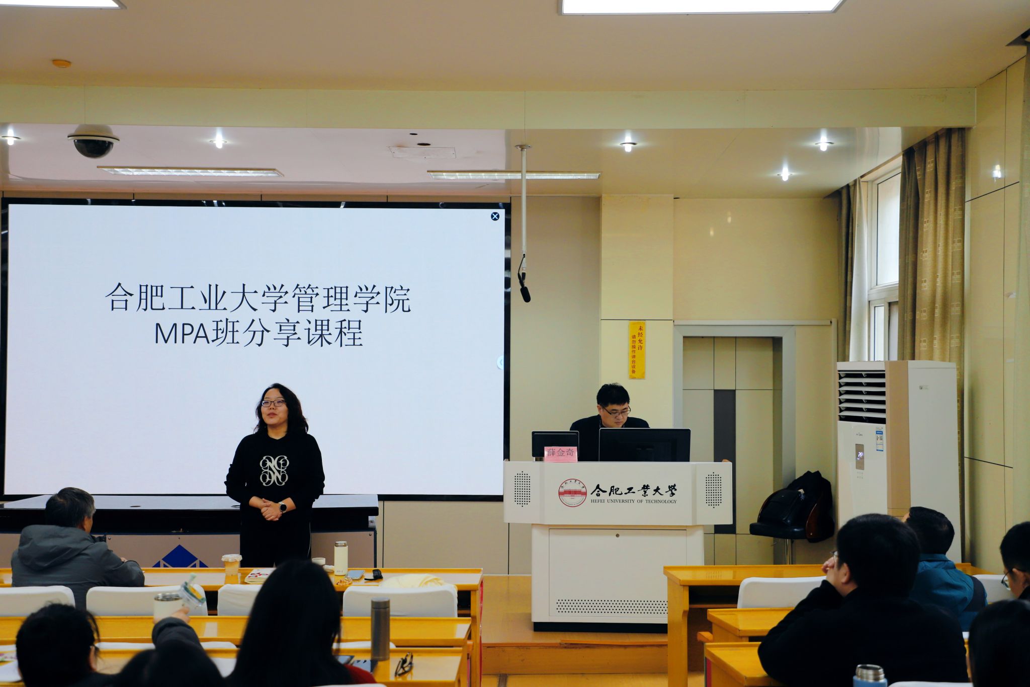 12月7日,合肥工业大学2025级MPA多师同堂顺利开展。管理学院赵沁娜老师、陈正光老师特邀安徽省工业和信息化厅企业发展服务处三级调研员、金融学博士、合肥工业大学行业导师薛金奇现场授课,围绕经济政策解读与数智发展前景展开分享。