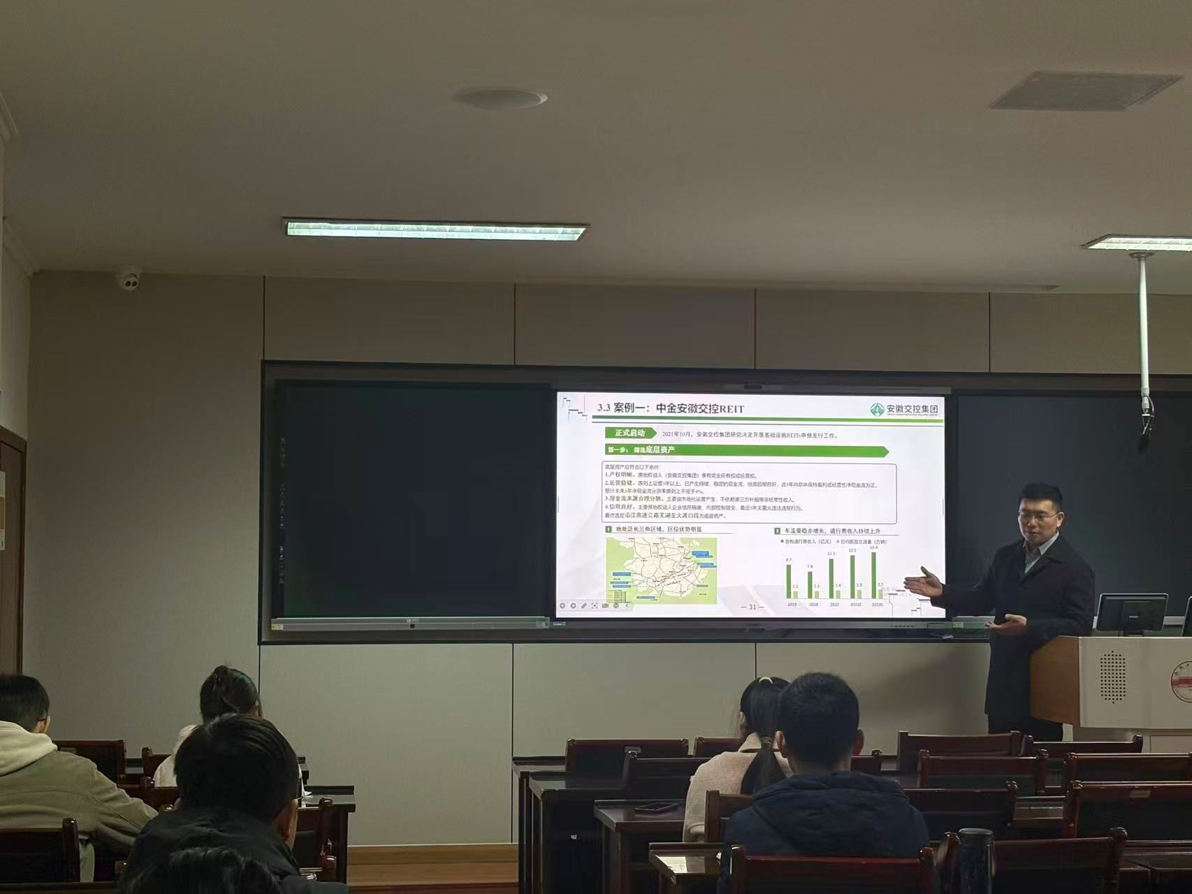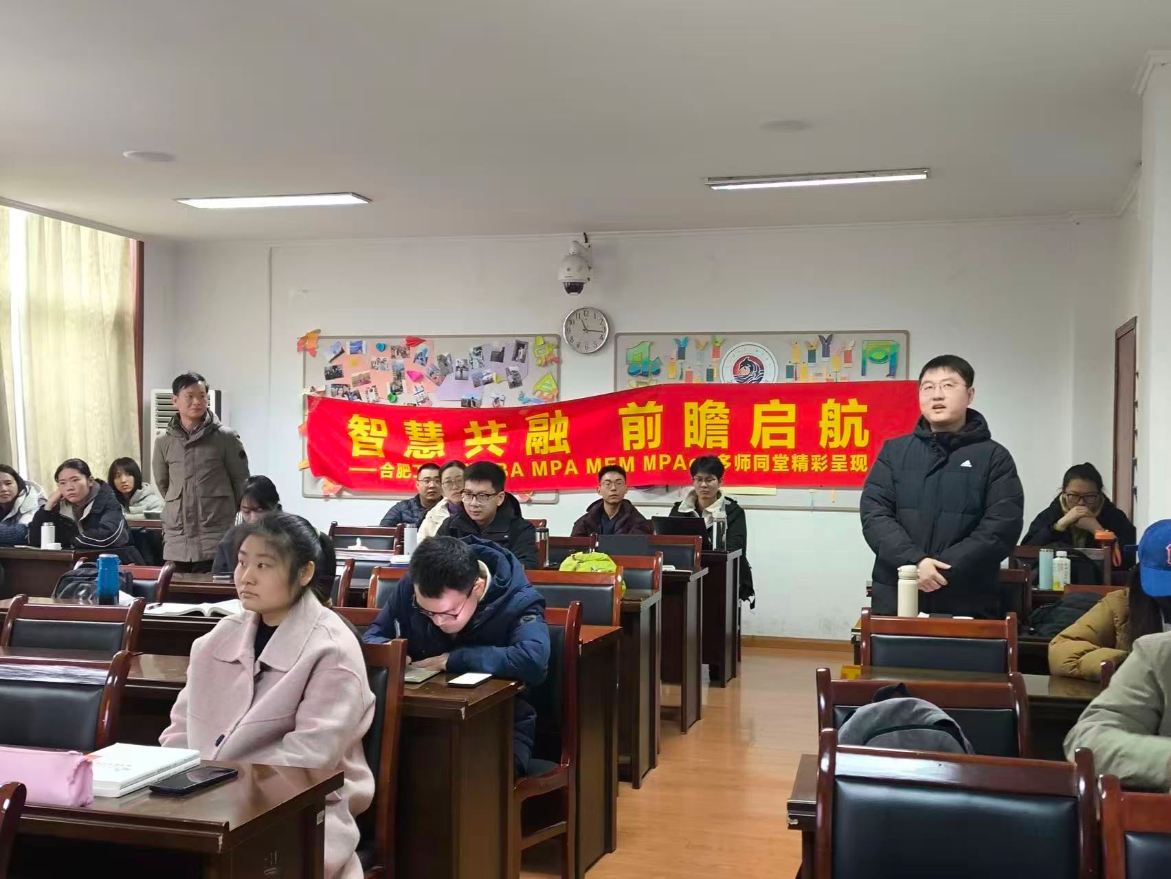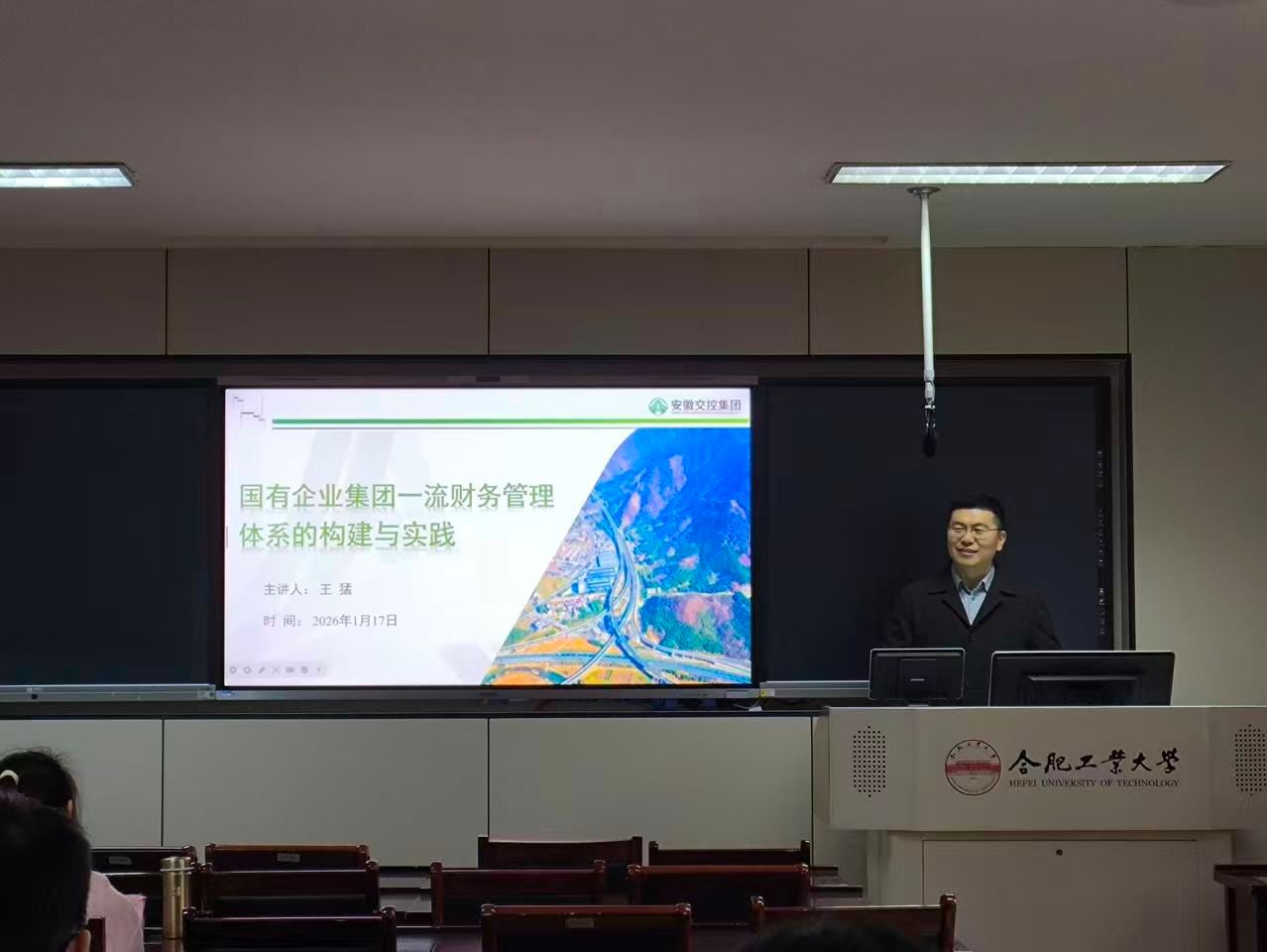 2026年1月17日上午,合肥工业大学2024级MPAcc《财务管理理论与实务》课堂开启多师同堂教学模式。课程任课教师、管理学院张超老师特邀安徽交控集团财务公司董事长王猛走进课堂,以 “国有企业集团一流财务管理体系的构建与实践” 为题,带来了一场兼具理论深度与实践价值的专业授课。
