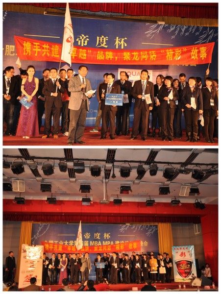 2012年3月24日晚,由合肥荣事达三洋电器股份有限公司倾情赞助,合肥工业大学MBA MPA管理中心主办,合肥工业大学MBA MPA联合会承办的“帝度杯-合肥工业大学第四届MBA MPA 建设奖颁奖晚会”在合肥工业大学大学生活动中心隆重举行,本次晚会与新浪网站合作,采用了微博大屏幕全程互动,在场的所有观众都能通过发送心语参与到晚会互动之中。