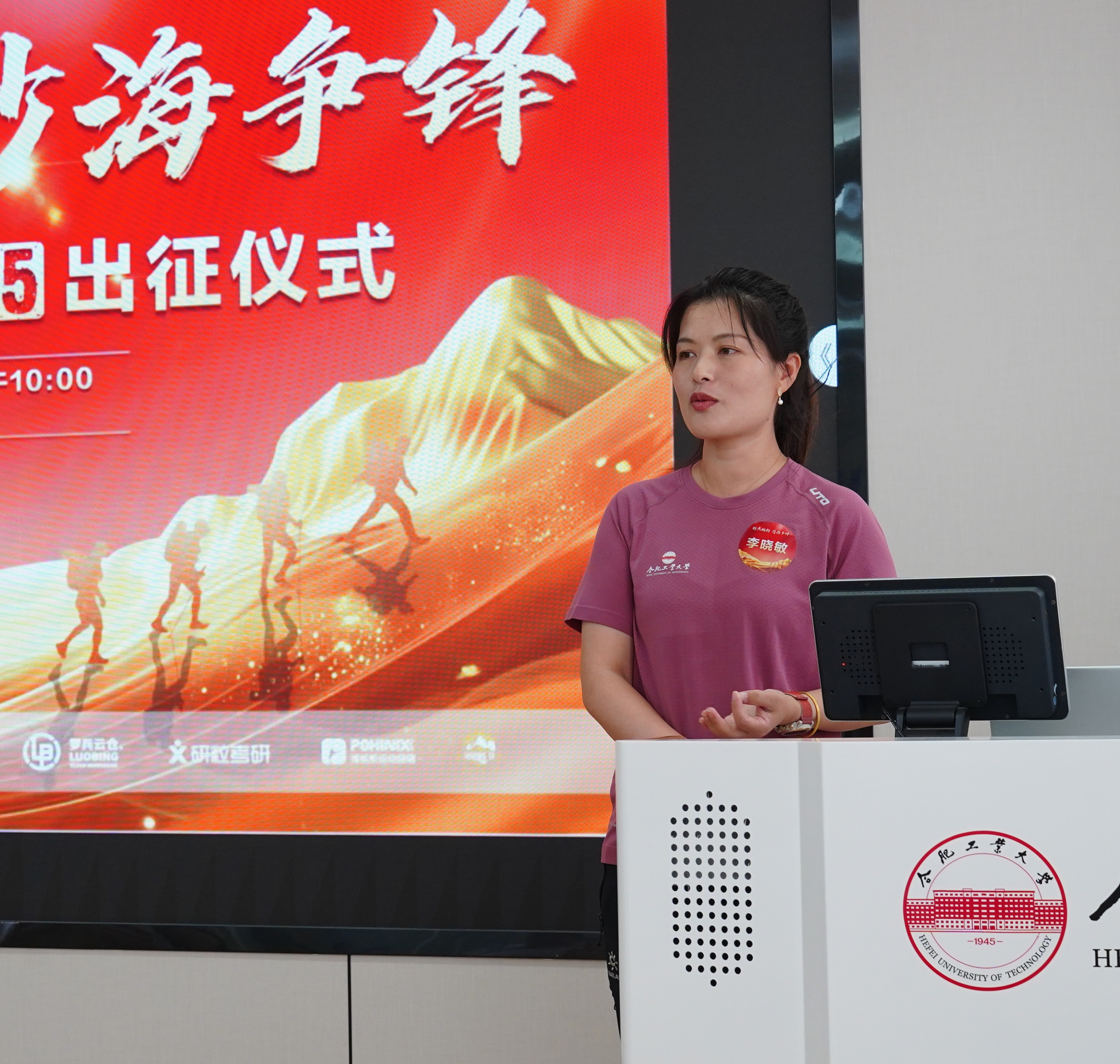 授旗仪式中,罗彪教授向沙15领队李晓敏授予赛事旗帜,寄语队员以旗为引、勇毅前行,发扬工大精神。同时感谢各界大力支持,着重叮嘱全体队员平安出征、顺利参赛。